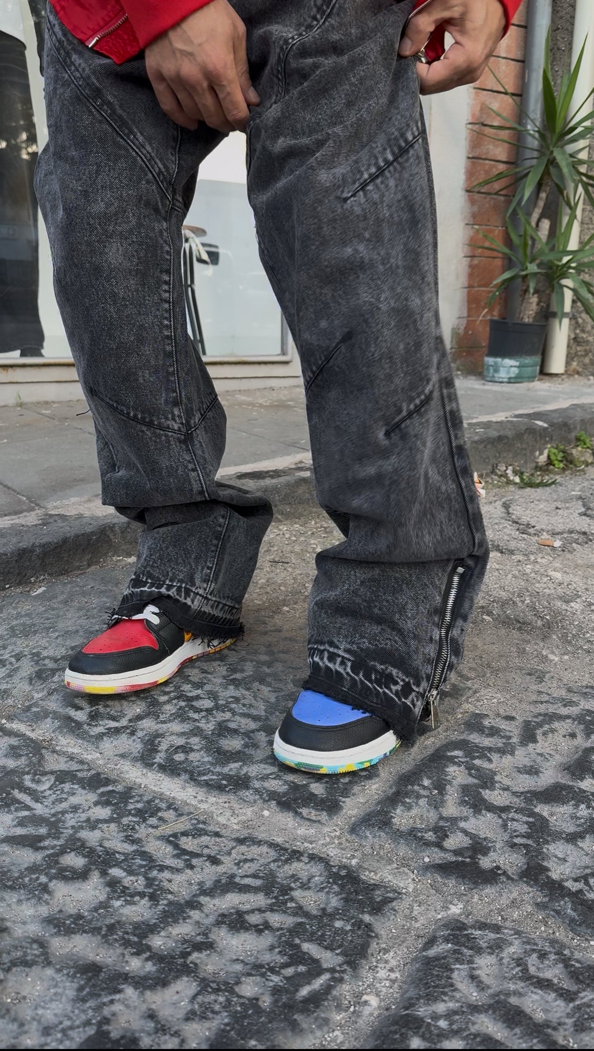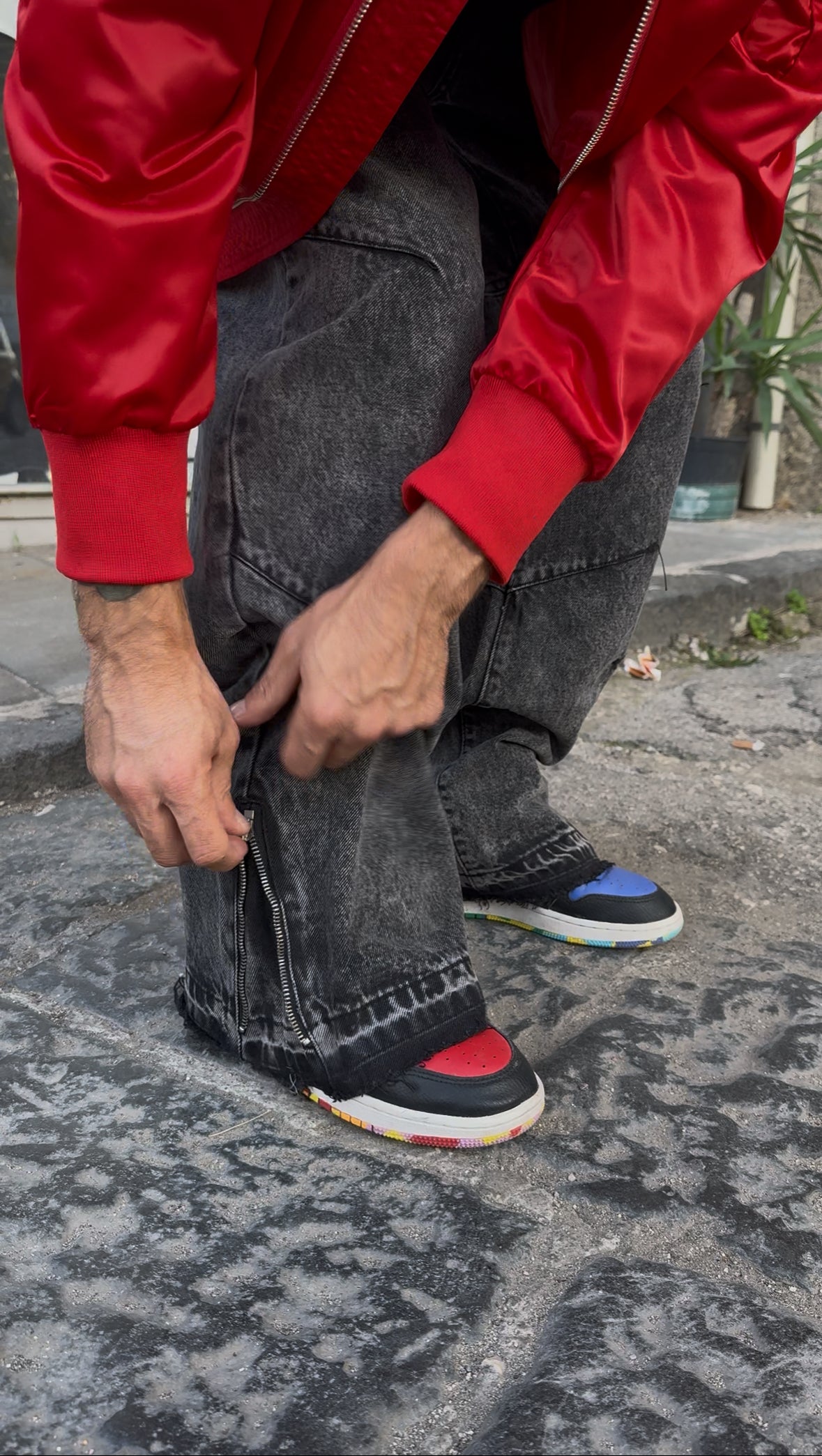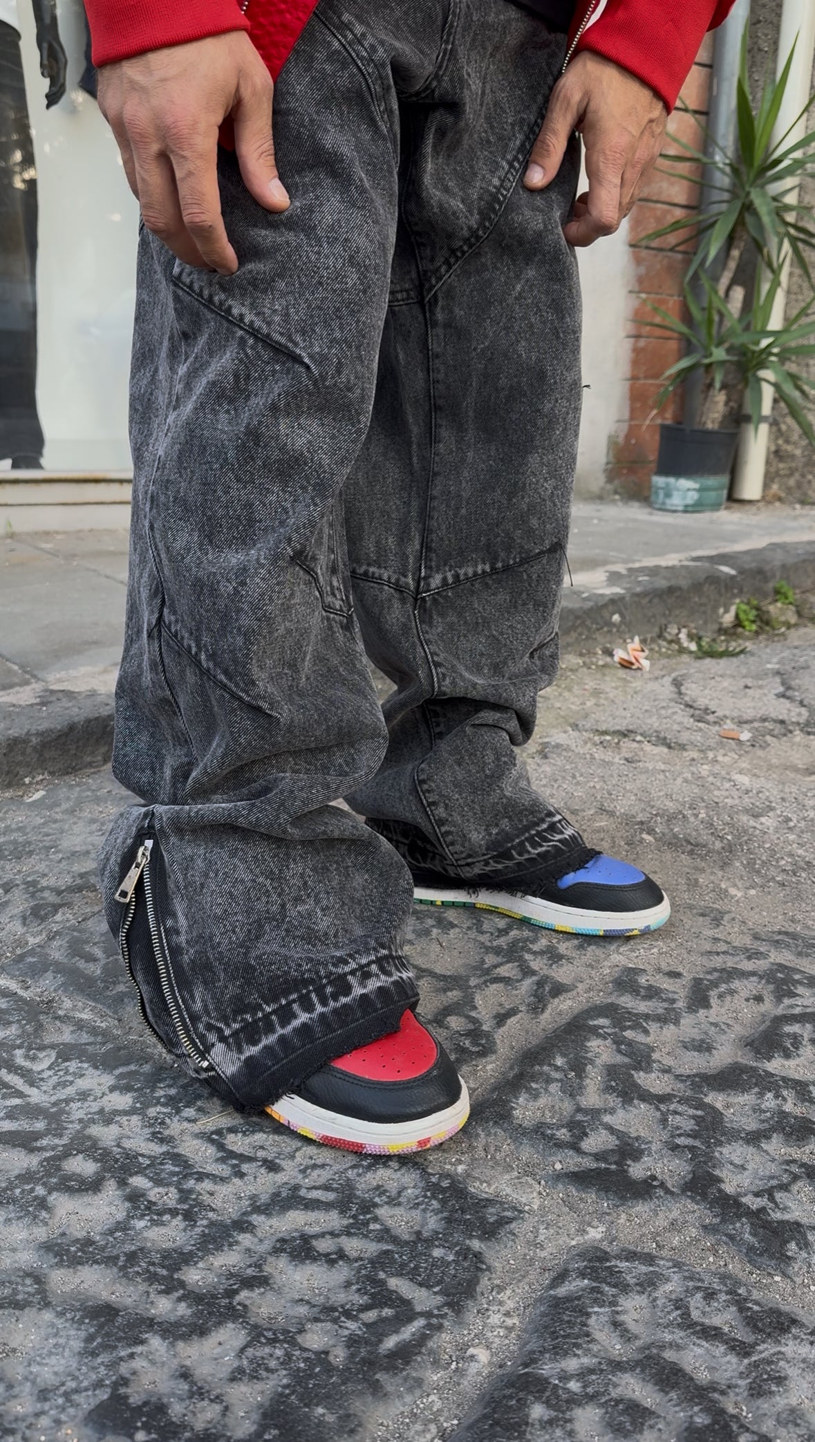 Jeans con zip grigio, vestibilità comoda jeans costruito made in Italy 100% cotone