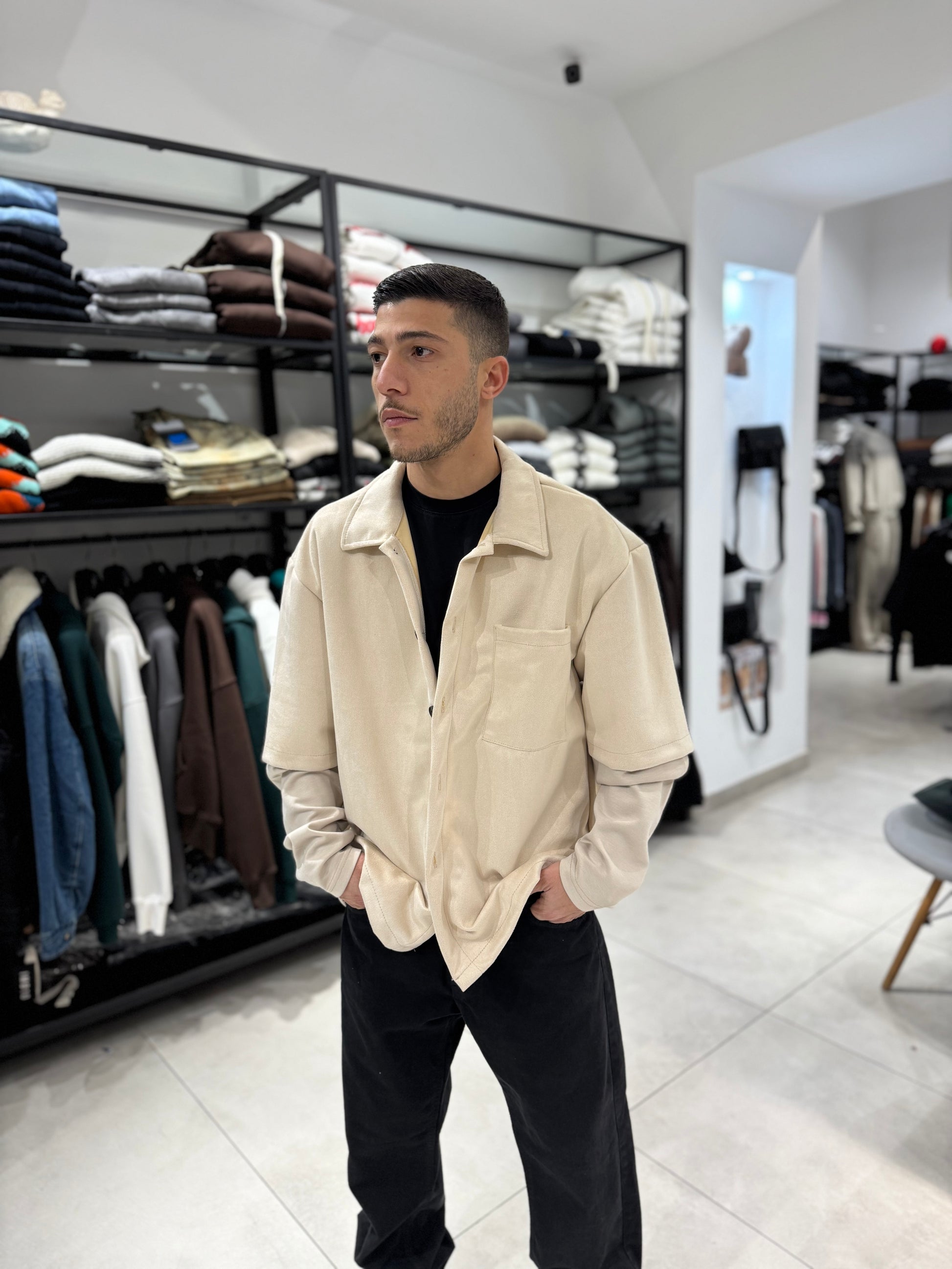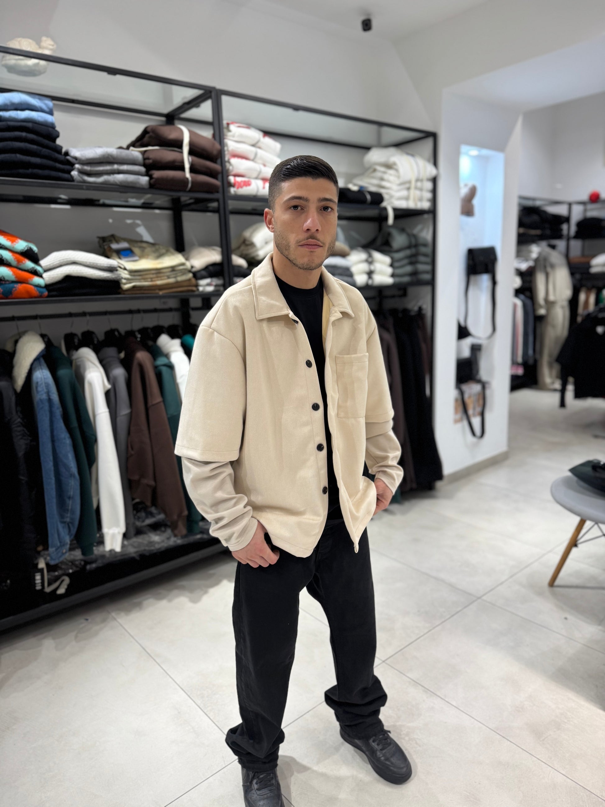 Camicia doppia manica in camoscio, troppo carina, alta qualità fit comodo, made in Italy