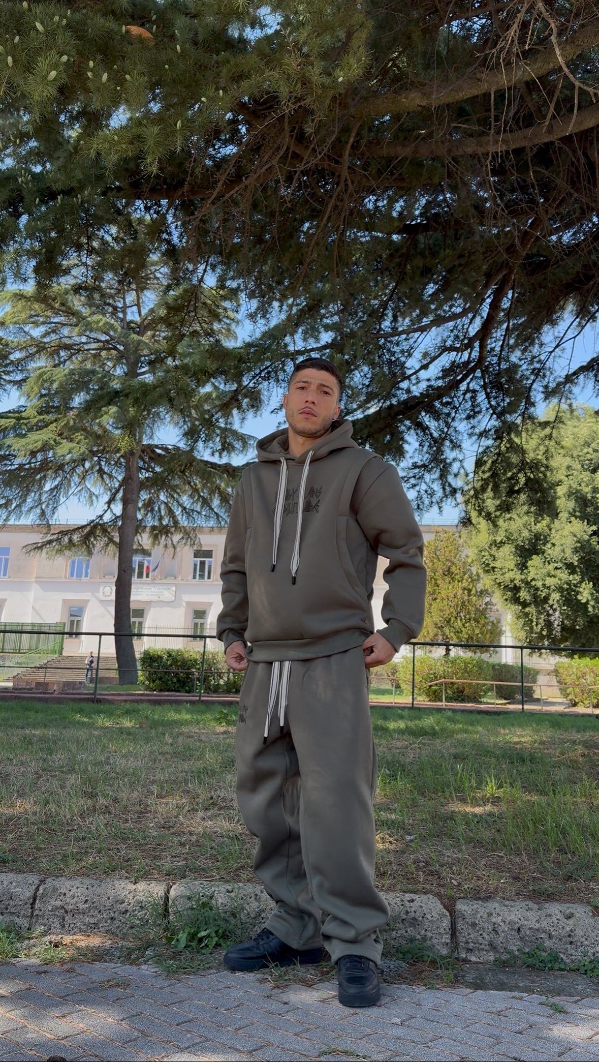 Tuta con ricamo 100% cotone made in Italy, altissima, qualità, fondo largo con eclisse sotto